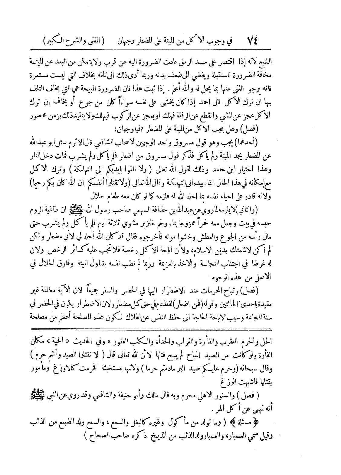 الحل والحرم العقرب والفأرة والغراب والحدأة والكلب العقور " وفي الحديث " الحية " مكان الفأرة ولو كانت من الصيد المباح لم يبح قتلها لأن الله تعالى قال (لا تقتلوا الصيد وأنتم حرم) وقال سبحانه (وحرم عليكم صيد البر ما دمتم حرما) ولأنها مستخبثة فحرمت كالاوزغ ومأمور بقلتها فأشبهت الوزغ (فصل) والسنور الأهلي محرم وبه قال مالك وأبو حنيفة والشافعي وقد روي عن النبي صلى الله عليه وسلم أنه نهى عن أكل الهر.