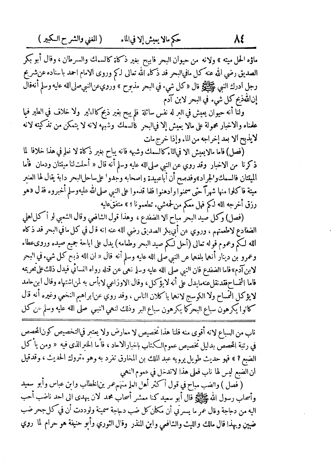 ناب من السباع لأنه أقوى منه قلنا هذا تخصيص لا معارض ولا يعتبر في التخصيص كون المخصص في رتبة المخصص بدليل تخصيص عموم الكتاب بأخبار الآحاد، فأما الخبر الذي فيه " ومن يأكل الضبع؟ " فهو حديث طويل يرويه عبد الملك بن المخارق تفرد به وهو متروك الحديث، وقد قيل أن الضبع ليس لها ناب فعلى هذا لا تدخل في عموم النهي (فصل) والضب مباح في قول أكثر أهل العلم منهم عمر بن الخطاب وابن عباس وأبو سعيد وأصحاب رسول الله صلى الله عليه وسلم قال أبو سعيد كنا معشر أصحاب محمد لأن يهدى إلى أحد ناضب أحب إليه من دجاجة وقال عمر ما يسرني أن مكان كل ضب دجاجة سمينة ولوددت أن في كل جحر ضب ضبين وبهذا قال مالك والليث والشافعي وابن المنذر وقال الثوري وأبو حنيفة هو حرام لما روي