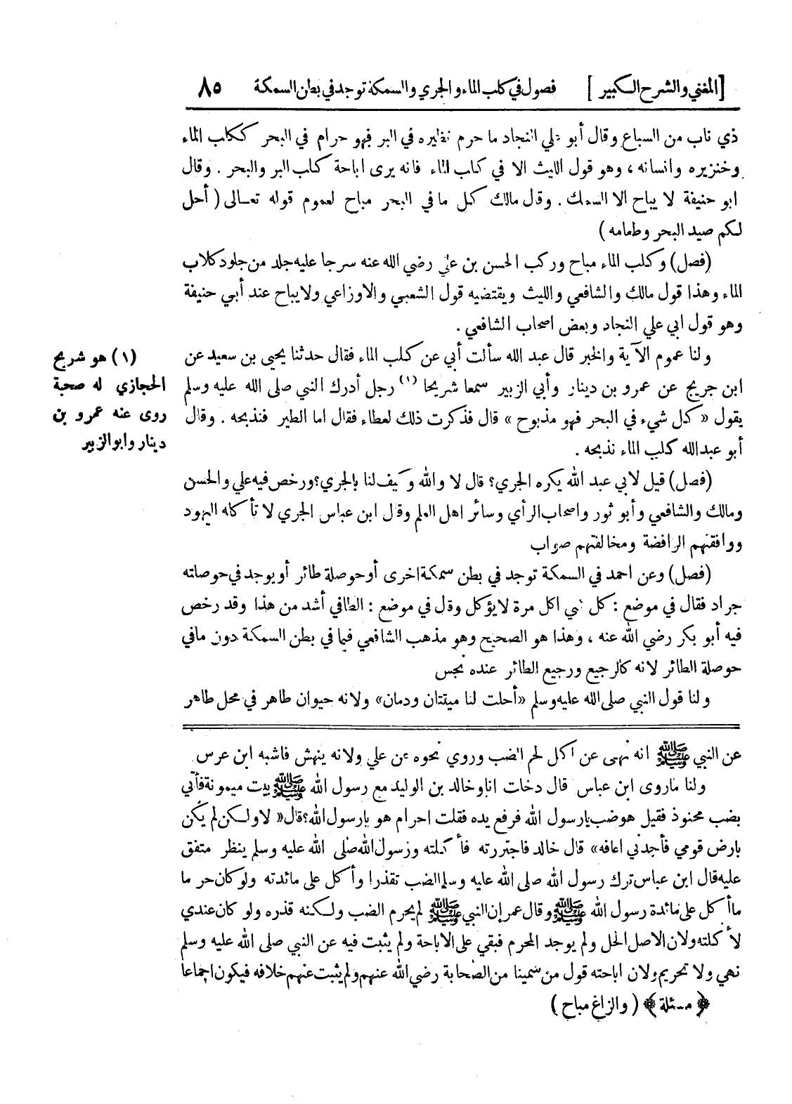 عن النبي صلى الله عليه وسلم أنه نهى عن أكل لحم الضب وروي نحوه عن علي ولأنه ينهش فأشبه ابن عرس ولنا ما روى ابن عباس قال دخلت أنا وخالد بن الوليد مع رسول الله صلى الله عليه وسلم بيت ميمونة فأتي بضب محنوذ فقيل هو ضب يا رسول الله فرفع يده فقلت أحرام هو يا رسول الله؟ قال " لا ولكن لم يكن بأرض قومي فأجدني أعافه " قال خالد فاجتررته فأكلته ورسول الله صلى الله عليه وسلم ينظر متفق عليه قال ابن عباس ترك رسول الله صلى الله عليه وسلم الضب تقذرا وأكل على مائدته ولو كان حرما ما أكل على مائدة رسول الله صلى الله عليه وسلم وقال عمر أن النبي صلى الله عليه وسلم لم يحرم الضب ولكنه قذره ولو كان عندي لأكلته ولأن الاصل الحل ولم يوجد المحرم فبقي على الإباحة ولم يثبت فيه عن النبي صلى الله عليه وسلم نهي ولا تحريم ولأن إباحته قول من سمينا من الصحابة رضي الله عنهم ولم يثبت عنهم خلافه فيكون إجماعاً * (مسألة) * (والزاغ مباح)