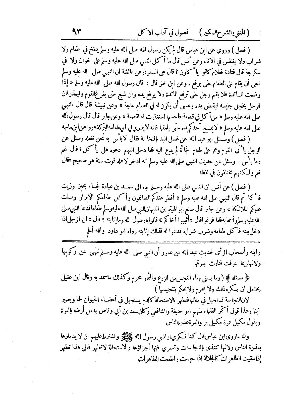 وابنه وأصحاب الرأي لحديث عبد الله بن عمرو أن النبي صلى الله عليه وسلم نهى عن ركوبها ولأنها ربما عرقت فتلوث بعرقها * (مسألة) (وما يسقى بالماء النجس من الزرع والثمار محرم وكذلك ما سمد به وقال ابن عقيل يحتمل أن يكره ذلك ولا يحرم ولا يحكم بتنجيسها) لأن النجاسة تستحيل في بطنها فتطهر بالاستحالة كالدم يستحيل في أعضاء الحيوان لحما ويصير لبناً وهذا قول أكثر الفقهاء منهم أبو حنيفة والشافعي وكان سعد بن أبي وقاص يدمل أرضه بالعرة ويقول مكيل عرة مكيل بر والعرة عذرة الناس ولنا ما روى ابن عباس قال كنا نكري أراضي رسول الله صلى الله عليه وسلم ونشترط عليهم أن لا يدملوها بعذرة الناس ولأنها تتغذى بالنجاسات وتسري فيها أجزاؤها والاستحالة لا تطهر فعلى هذا تطهر إذا سقيت الطاهرات كالجلالة إذا حبست وأطعمت الطاهرات