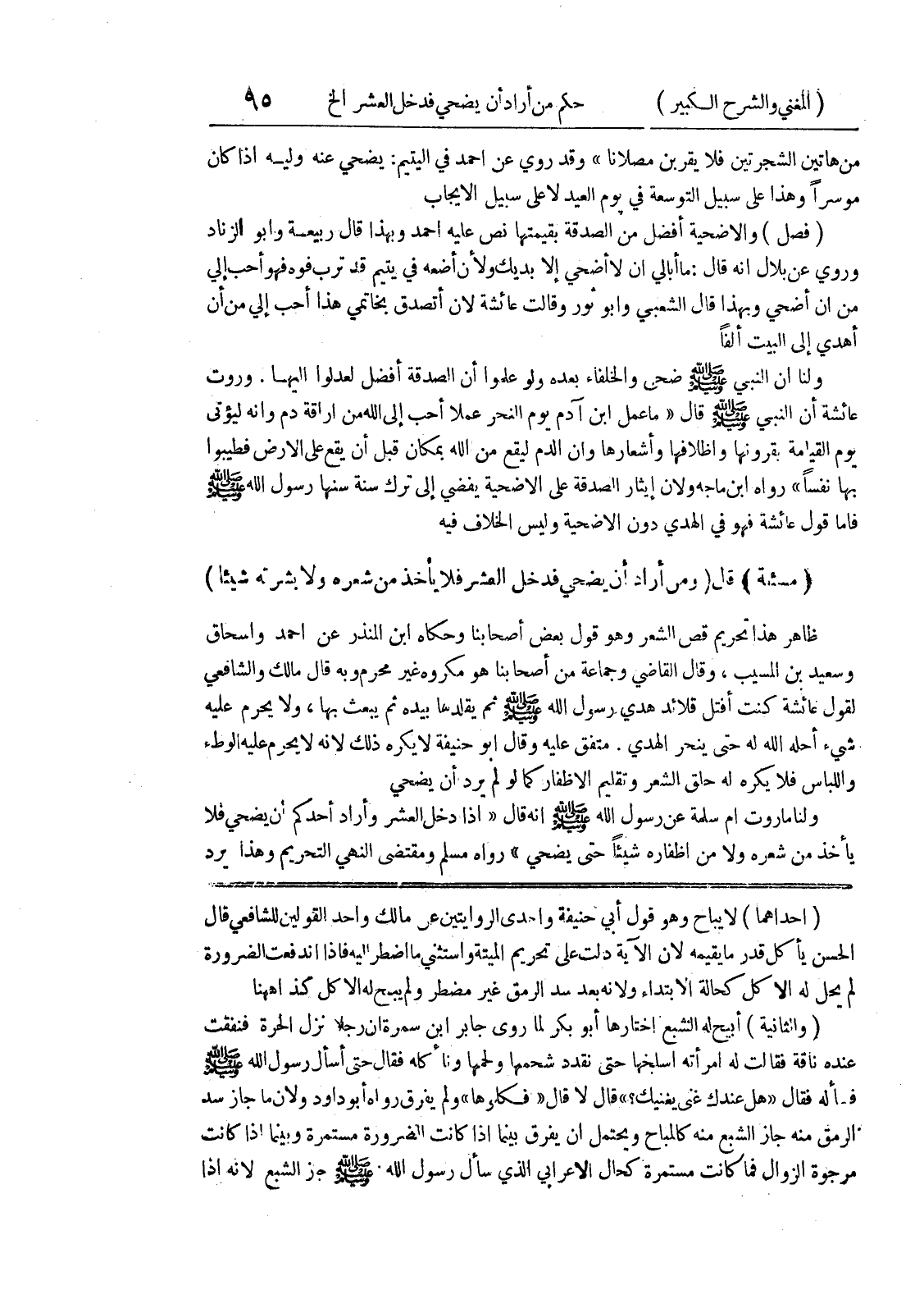 لم يحل له الأكل كحالة الابتداء ولأنه بعد سد الرمق غير مضطر ولم يبح له الأكل كذا ههنا (والثانية) أبيح له النشبع اختارها أبو بكر لما روى جابر ابن سمرة أن رجلاً نزل الحرة فنفقت عنده ناقة فقالت له امرأته اسلخها حتى نقدد شحمها ولحمها ونأكله فقال حتى أسأل رسول الله صلى الله عليه وسلم فسأله فقال " هل عندك غنى يغنيك؟ " قال لا قال " فكلوها " ولم يفرق رواه أبو داود ولأن ما جاز سد الرمق منه جاز الشبع منه كالمباح ويحتمل أن يفرق بينما إذا كانت الضرورة مستمرة وبينما إذا كانت مرجوة الزوال فما كانت مستمرة كحال الإعرابي الذي سأل رسول الله صلى الله عليه وسلم جز الشبع لأنه إذا