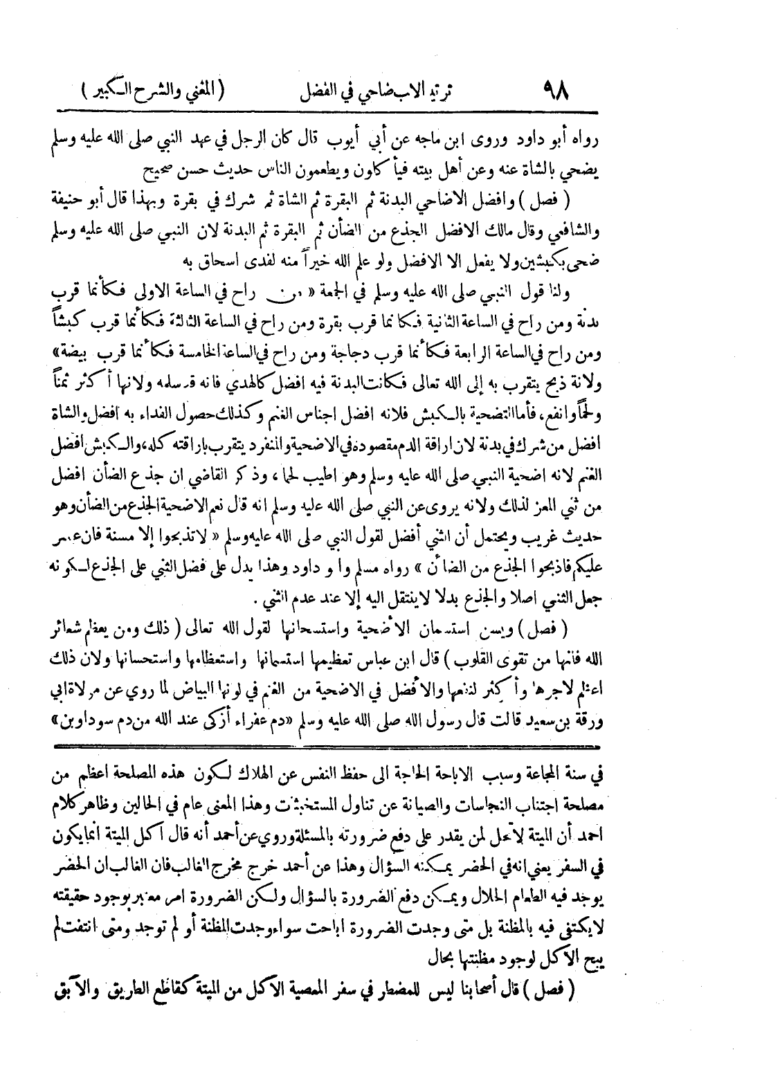 في سنة المجاعة وسبب الإباحة الحاجة إلى حفظ النفس عن الهلاك لكون هذه المصلحة أعظم من مصلحة اجتناب النجاسات والصيانة عن تناول المستخبثات وهذا المعنى عام في الحالين وظاهر كلام أحمد أن الميتة لا تحل لمن يقدر على دفع ضرورته بالمسألة وروى عن أحمد أنه قال أكل الميتة إنما يكون في السفر يعني أنه في الحضر يمكنه السؤال وهذا عن أحمد خرج مخرج الغالب فإن الغالب أن الحضر يوجد فيه الطعام الحلال ويمكن دفع الضرورة بالسؤال ولكن الضرورة امر معبر بوجود حقيقته لا يكتفى فيه بالمظنة بل متى وجدت الضرورة أباحت سواء وجدت المظنة أو لم توجد ومتى انتفت لم يبح الأكل لوجود مظنتها بحال (فصل) قال أصحابنا ليس للمضطر في سفر المعصية الأكل من الميتة كقاطع الطريق والآبق
