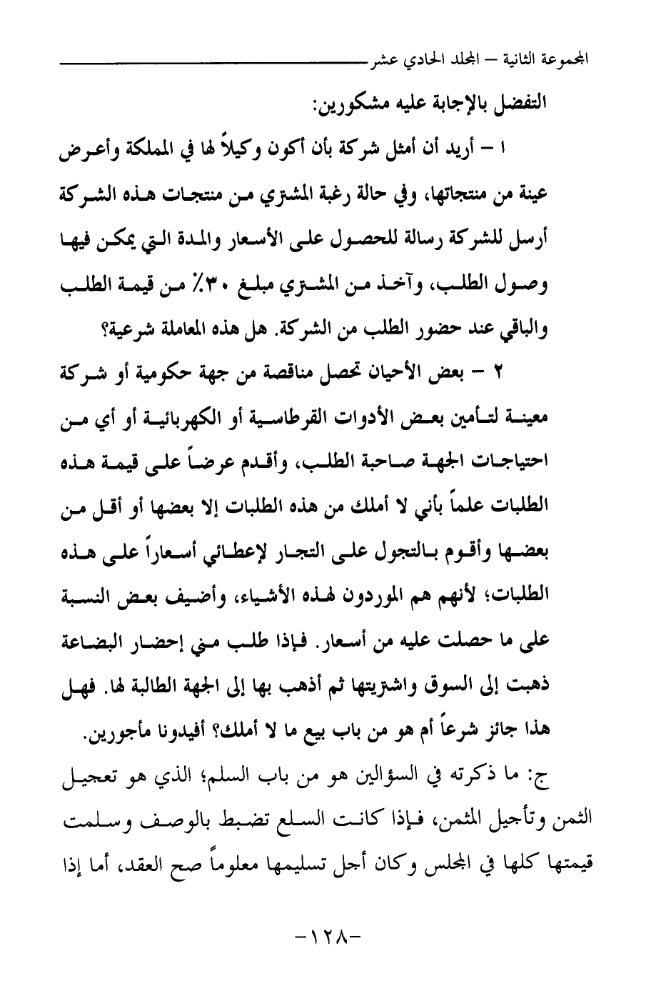 1- أريد أن أمثل شركة بأن أكون وكيلا لها في المملكة وأعرض عينة من منتجاتها، وفي حالة رغبة المشتري من منتجات هذه الشركة أرسل للشركة رسالة للحصول على الأسعار والمدة التي يمكن فيها وصول الطلب، وآخذ من المشتري مبلغ 30% من قيمة الطلب والباقي عند حضور الطلب من الشركة. هل هذه المعاملة شرعية؟