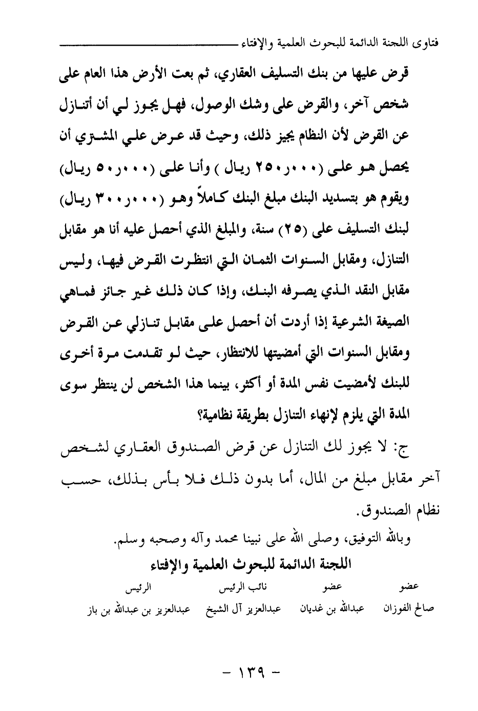 ج: لا يجوز لك التنازل عن قرض الصندوق العقاري لشخص آخر مقابل مبلغ من المال، أما بدون ذلك فلا بأس بذلك، حسب نظام الصندوق.
