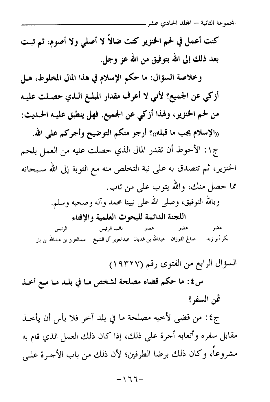 وخلاصة السؤال: ما حكم الإسلام في هذا المال المخلوط، هل أزكي عن الجميع؟ لأني لا أعرف مقدار المبلغ الذي حصلت عليه من لحم الخنزير، ولهذا أزكي عن الجميع. فهل ينطبق عليه الحديث: «الإسلام يجب ما قبله (¬1) » ؟ أرجو منكم التوضيح وأجركم على الله.