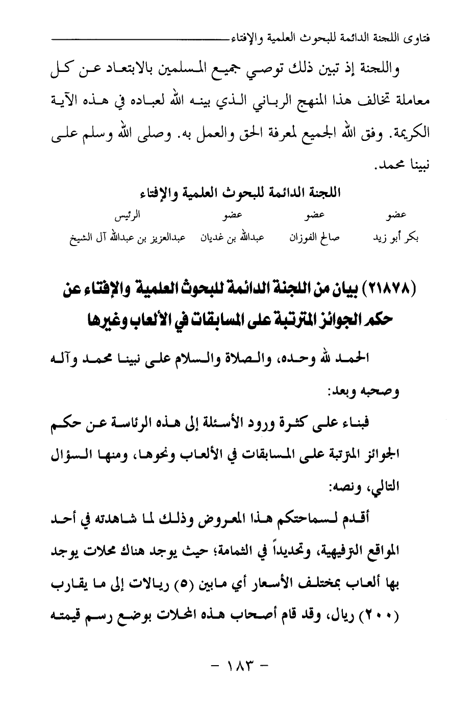 بيان من اللجنة الدائمة للبحوث العلمية والإفتاء عن حكم الجوائز المترتبة على المسابقات في الألعاب وغيرها