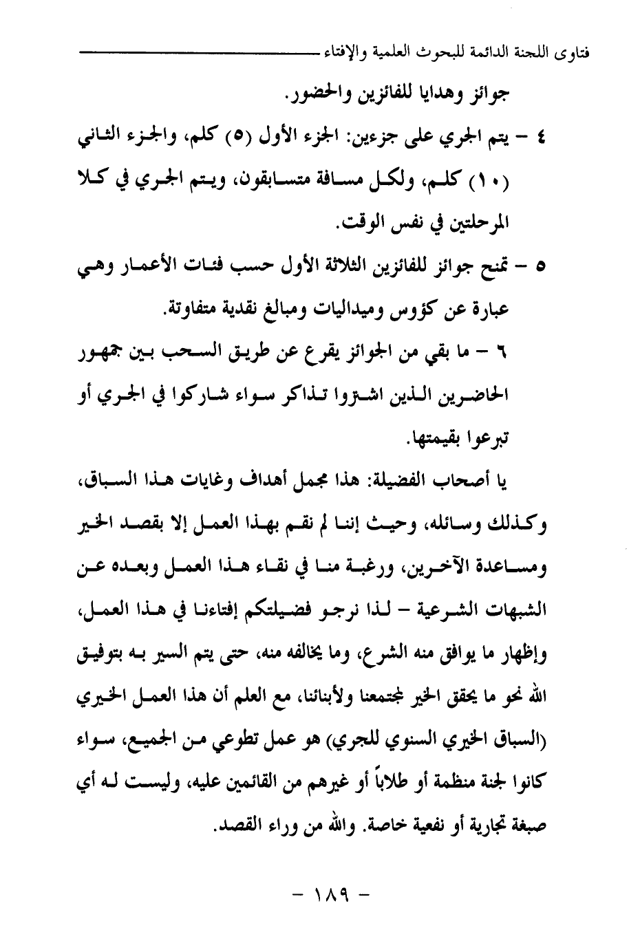 يا أصحاب الفضيلة: هذا مجمل أهداف وغايات هذا السباق، وكذلك وسائله، وحيث إننا لم نقم بهذا العمل إلا بقصد الخير ومساعدة الآخرين، ورغبة منا في نقاء هذا العمل وبعده عن الشبهات الشرعية ـ لذا نرجو فضيلتكم إفتاءنا في هذا العمل، وإظهار ما يوافق منه الشرع، وما يخالفه منه، حتى يتم السير به بتوفيق الله نحو ما يحقق الخير لمجتمعنا ولأبنائنا، مع العلم أن هذا العمل الخيري (السباق الخيري السنوي للجري) هو عمل تطوعي من الجميع، سواء كانوا لجنة منظمة أو طلابا أو غيرهم من القائمين عليه، وليست له أي صبغة تجارية أو نفعية خاصة. والله من وراء القصد.