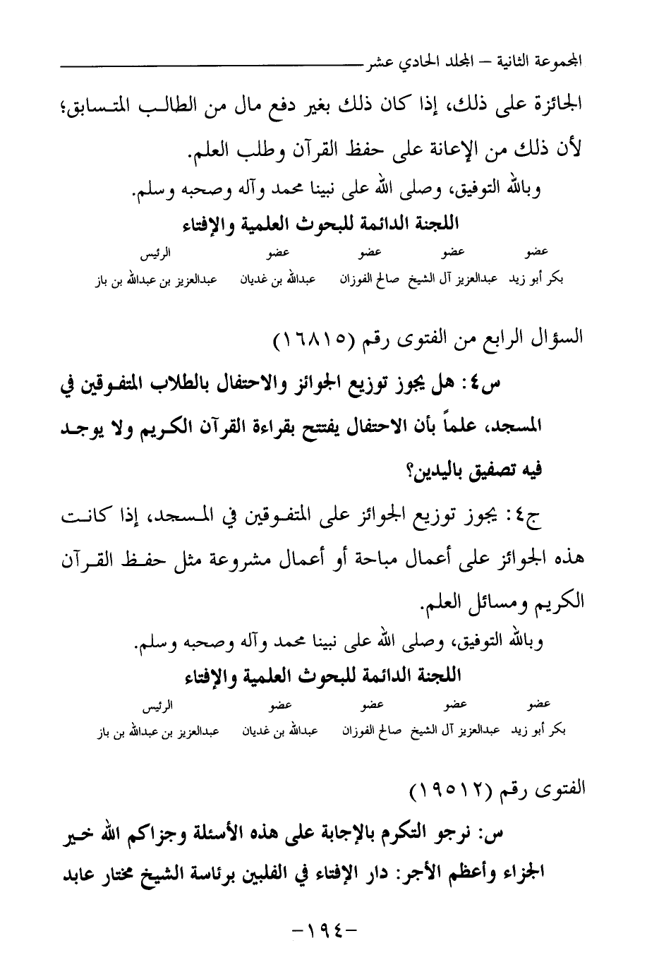 بكر أبو زيد ... عبد العزيز آل الشيخ ... صالح الفوزان ... عبد الله بن غديان ... عبد العزيز بن عبد الله بن باز