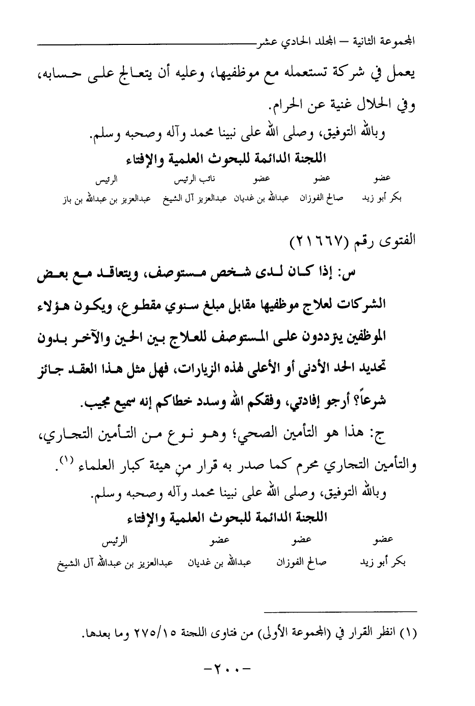 (¬1) انظر القرار في (المجموعة الأولى) من فتاوى اللجنة 15\275 وما بعدها.
