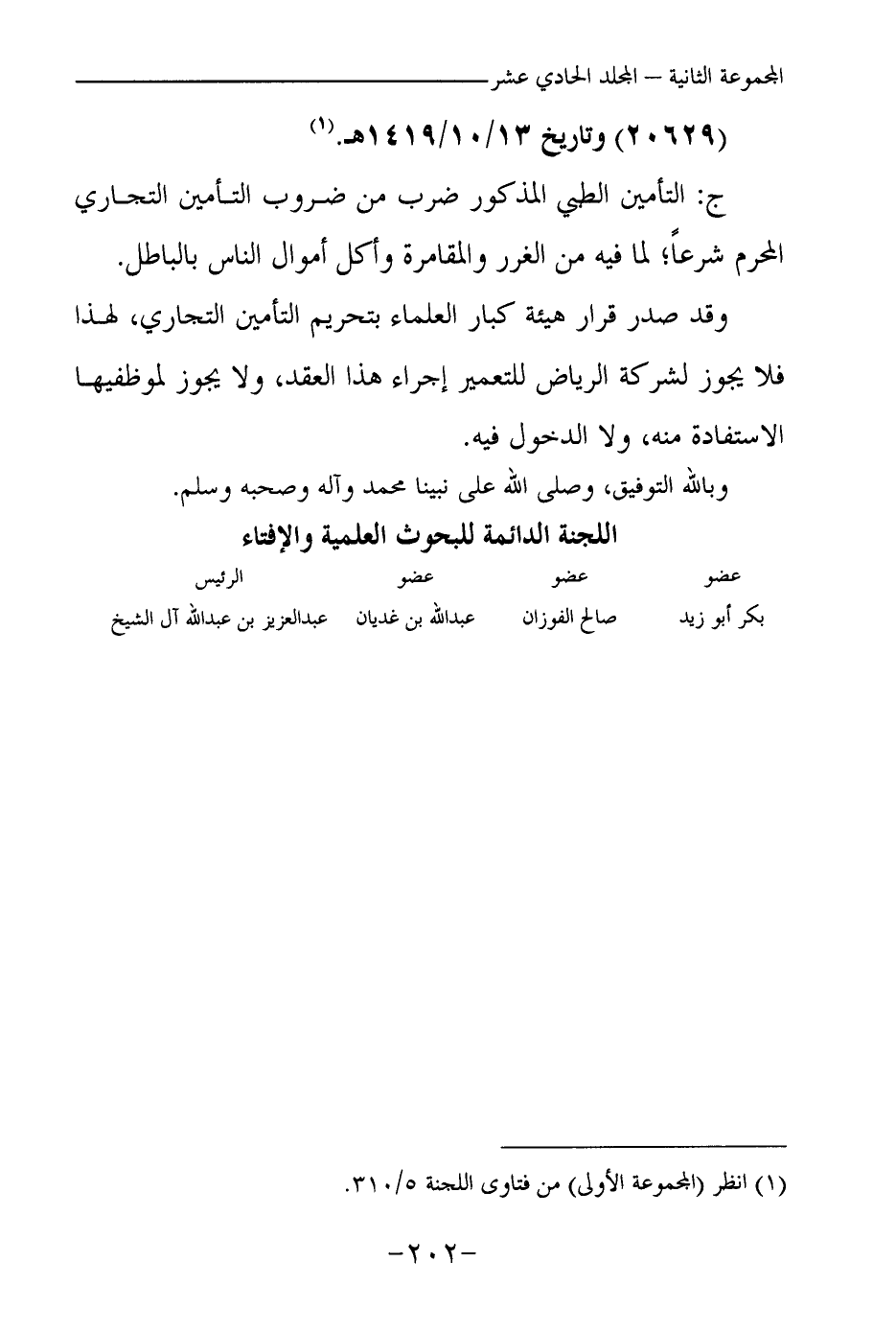 (¬1) انظر (المجموعة الأولى) من فتاوى اللجنة 5\310.