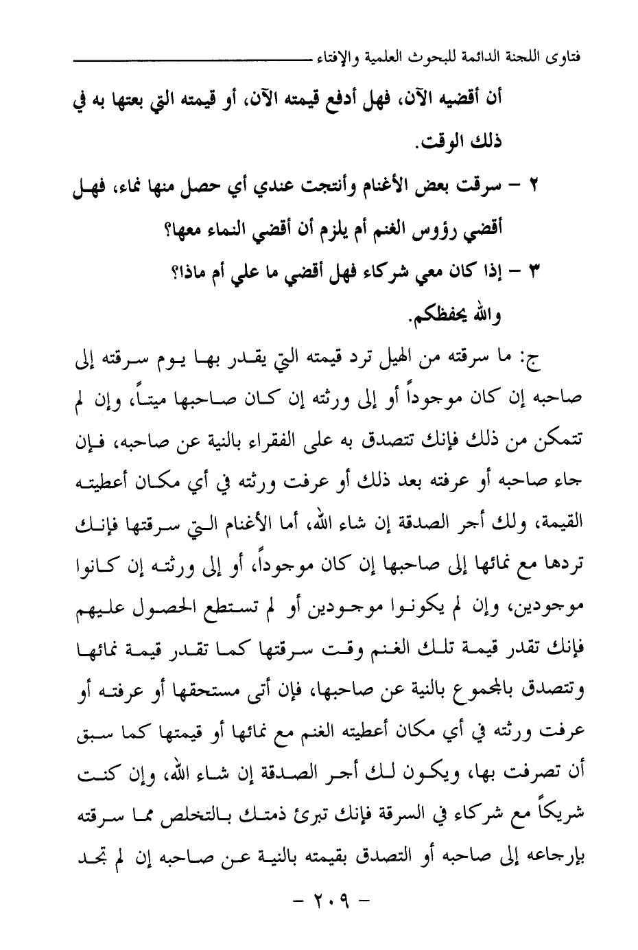 2- سرقت بعض الأغنام وأنتجت عندي أي حصل منها نماء، فهل أقضي رؤوس الغنم أم يلزم أن أقضي النماء معها؟