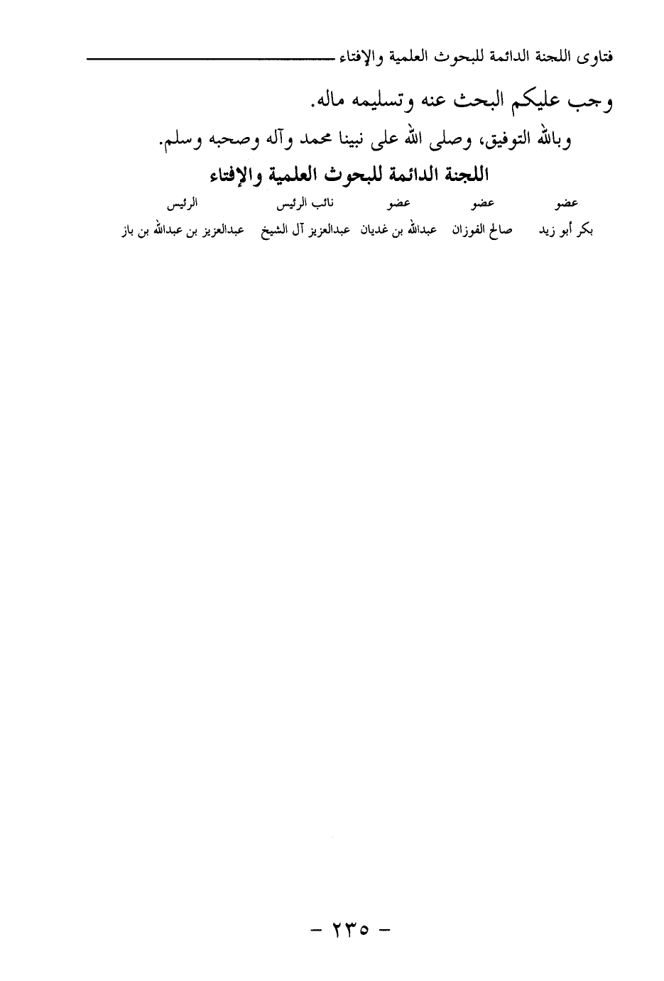 بكر أبو زيد ... صالح الفوزان ... عبد الله بن غديان ... عبد العزيز آل الشيخ ... عبد العزيز بن عبد الله بن باز