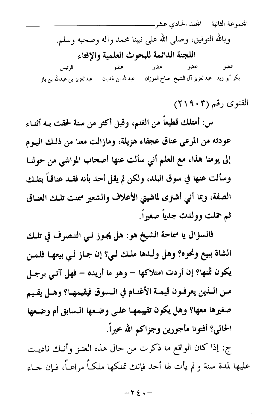 س: أمتلك قطيعا من الغنم، وقبل أكثر من سنة لحقت به أثناء عودته من المرعى عناق عجفاء هزيلة، وما زالت معنا من ذلك اليوم إلى يومنا هذا، مع العلم أني سألت عنها أصحاب المواشي من حولنا وسألت عنها في سوق البلد ولكن لم يقل أحد بأنه فقد عناقا بتلك الصفة، وبما أني أشتري لماشيتي الأعلاف والشعير سمنت تلك العناق ثم حملت وولدت جديا صغيرا.