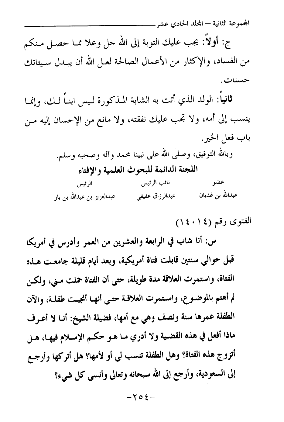س: أنا شاب في الرابعة والعشرين من العمر وأدرس في أمريكا قبل حوالي سنتين قابلت فتاة أمريكية، وبعد أيام قليلة جامعت هذه الفتاة، واستمرت العلاقة مدة طويلة، حتى إن الفتاة حملت مني، ولكن لم أهتم بالموضوع، واستمرت العلاقة حتى إنها أنجبت طفلة، والآن الطفلة عمرها سنة ونصف وهي مع أمها، فضيلة الشيخ: أنا لا أعرف ماذا أفعل في هذه القضية ولا أدري ما هو حكم الإسلام فيها، هل أتزوج هذه الفتاة؟ وهل الطفلة تنسب لي أو لأمها؟ هل أتركها وأرجع إلى السعودية، وأرجع إلى الله سبحانه وتعالى وأنسى كل شيء؟
