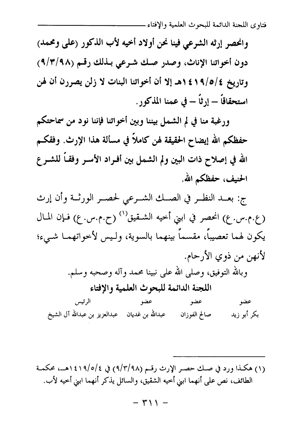 بكر أبو زيد ... صالح الفوزان ... عبد الله بن غديان ... عبد العزيز بن عبد الله آل الشيخ