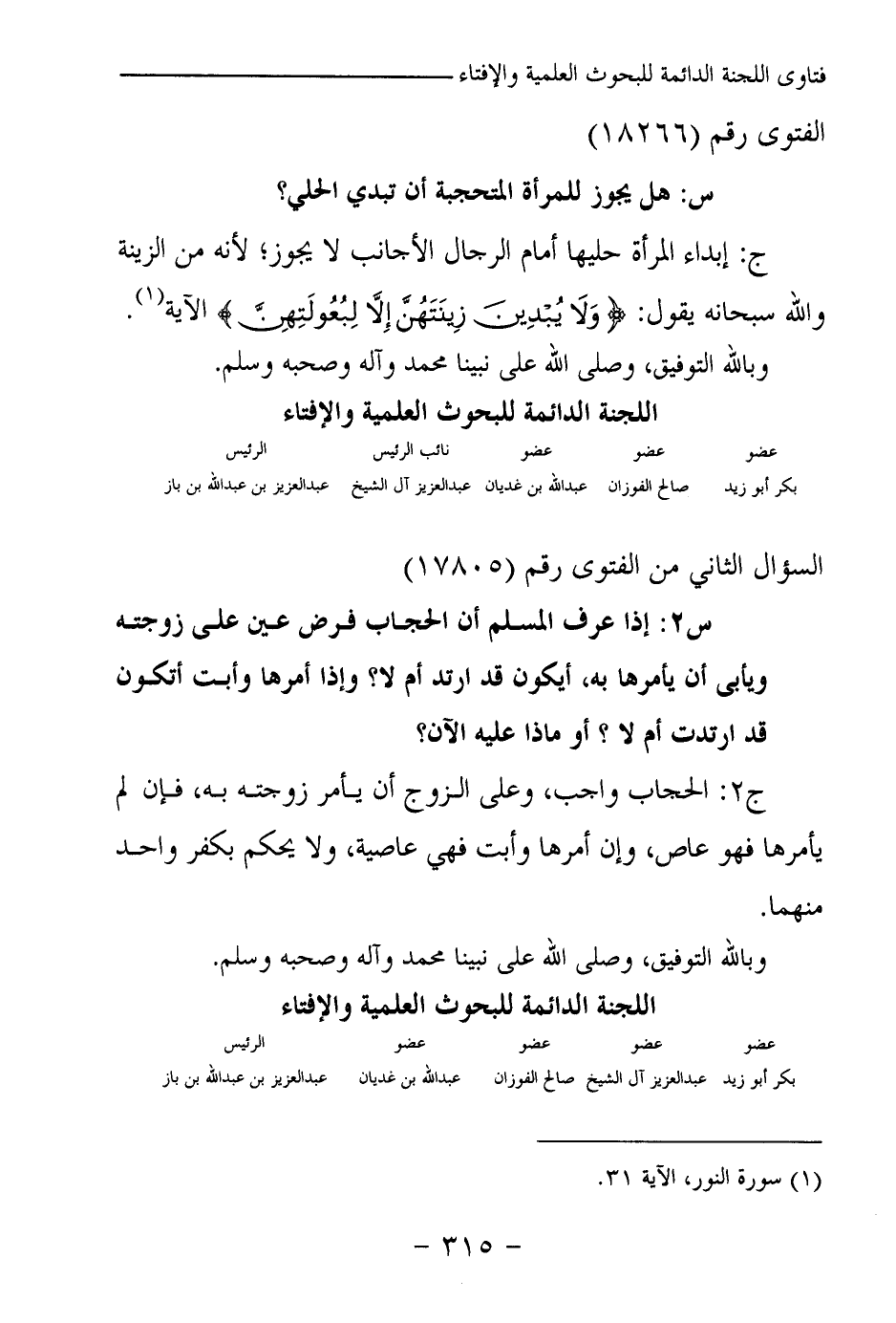 بكر أبو زيد ... صالح الفوزان ... عبد الله بن غديان ... عبد العزيز آل الشيخ ... عبد العزيز بن عبد الله بن باز