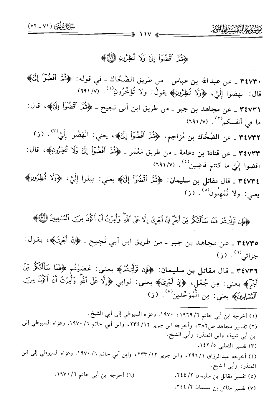 ٣٤٧٣٣ - عن قتادة بن دعامة -من طريق مَعْمَر- {ثم اقضوا إلي ولا تنظرون}، قال: اقضوا إلَيَّ ما كنتم قاضِين (¬٤). (٧/ ٦٩١)