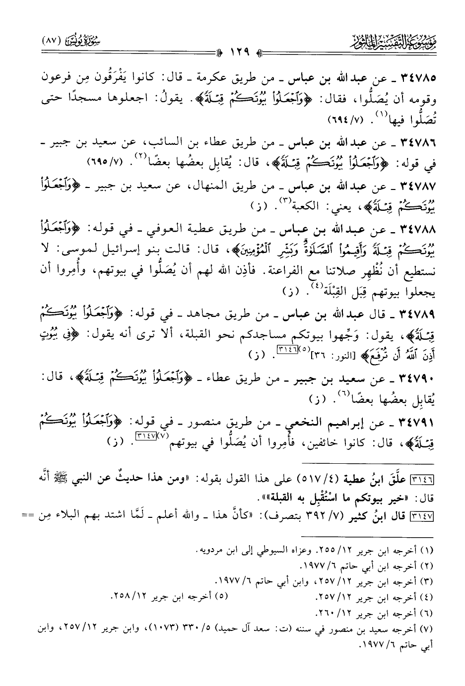 ٣٤٧٨٩ - قال عبد الله بن عباس -من طريق مجاهد- في قوله: {واجعلوا بيوتكم قبلة}، يقول: وجِّهوا بيوتكم مساجدكم نحو القبلة، ألا ترى أنه يقول: {في بيوت أذن الله أن ترفع} [النور: ٣٦] (¬٥) [٣١٤٦]. (ز)