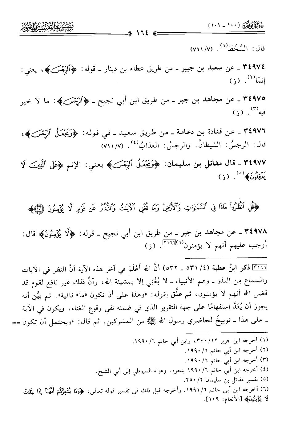 ٣٤٩٧٥ - عن مجاهد بن جبر -من طريق ابن أبي نجيح- {الرجس}: ما لا خير فيه (¬٣). (ز)