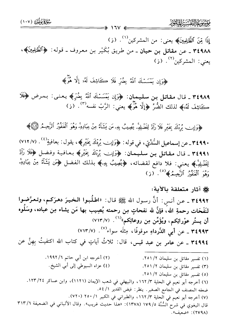 (¬٤) عزاه السيوطي إلى أبي الشيخ.