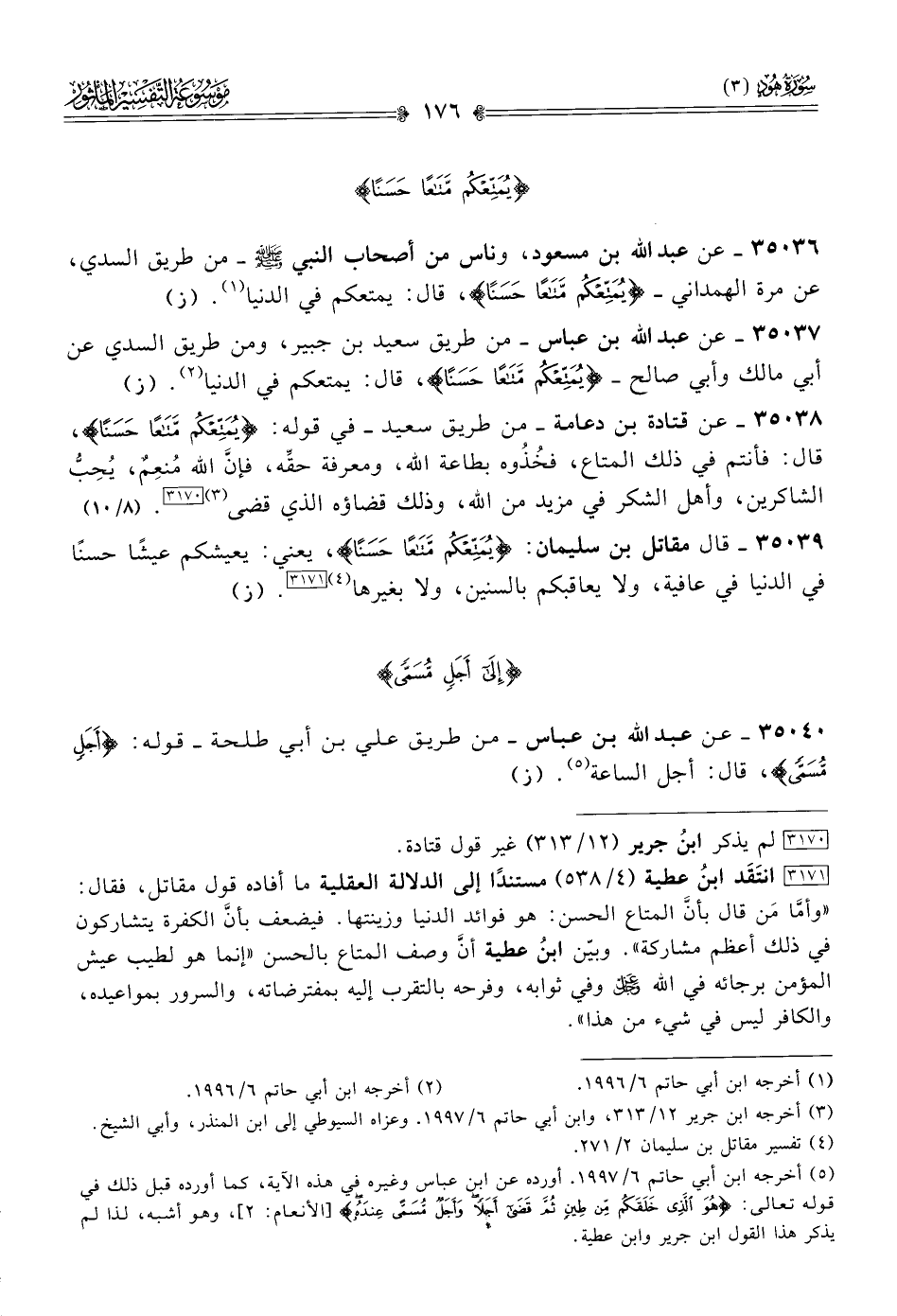 ٣٥٠٣٦ - عن عبد الله بن مسعود، وناس من أصحاب النبي - صلى الله عليه وسلم - -من طريق السدي، عن مرة الهمداني- {يمتعكم متاعا حسنا}، قال: يمتعكم في الدنيا (¬١). (ز)