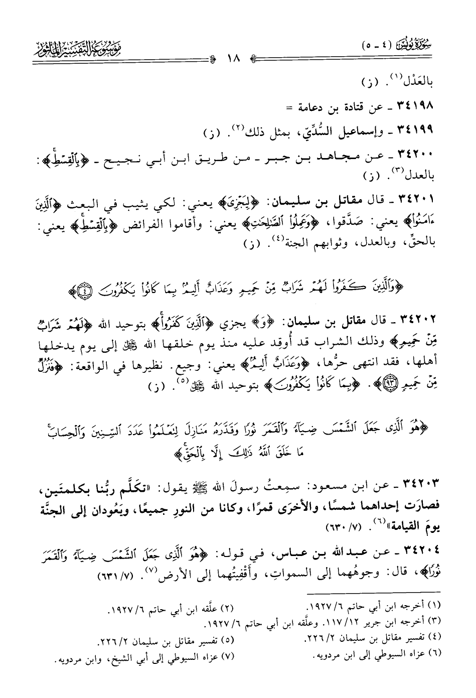 ٣٤٢٠٠ - عن مجاهد بن جبر -من طريق ابن أبي نجيح- {بالقسط}: بالعدل (¬٣). (ز)