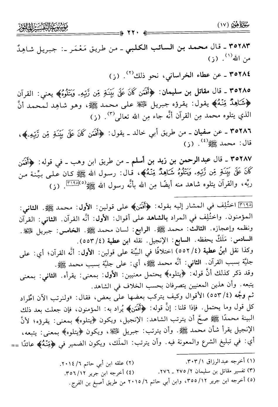 ٣٥٢٨٦ - عن سفيان -من طريق أبي خالد- يقول: {أفمن كان على بينة من ربه}، قال: محمد - صلى الله عليه وسلم - (¬٤). (ز)