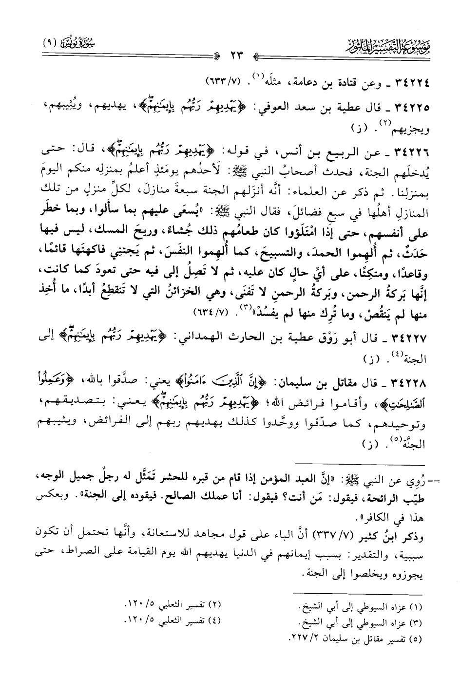 ٣٤٢٢٥ - قال عطية بن سعد العوفي: {يَهدِيهِم رَبُّهُم بِإيِمانِهِم}، يهديهم، ويُثِيبهم، ويجزيهم (¬٢). (ز)