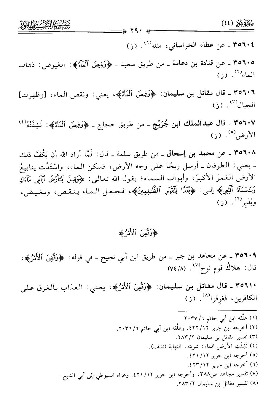 ٣٥٦٠٦ - قال مقاتل بن سليمان: {وغِيضَ الماءُ}، يعني: ونقص الماء، [وظهرت] الجبال (¬٣). (ز)