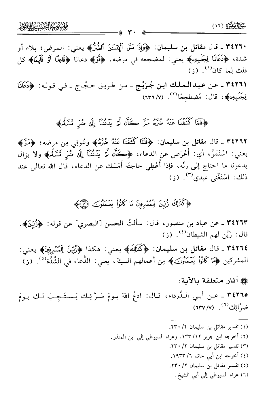 ٣٤٢٦١ - عن عبد الملك ابن جُرَيْج -من طريق حجّاج- في قوله: {دَعانا لِجَنبِهِ}، قال: مُضطجِعًا (¬٢). (٧/ ٦٣٦)