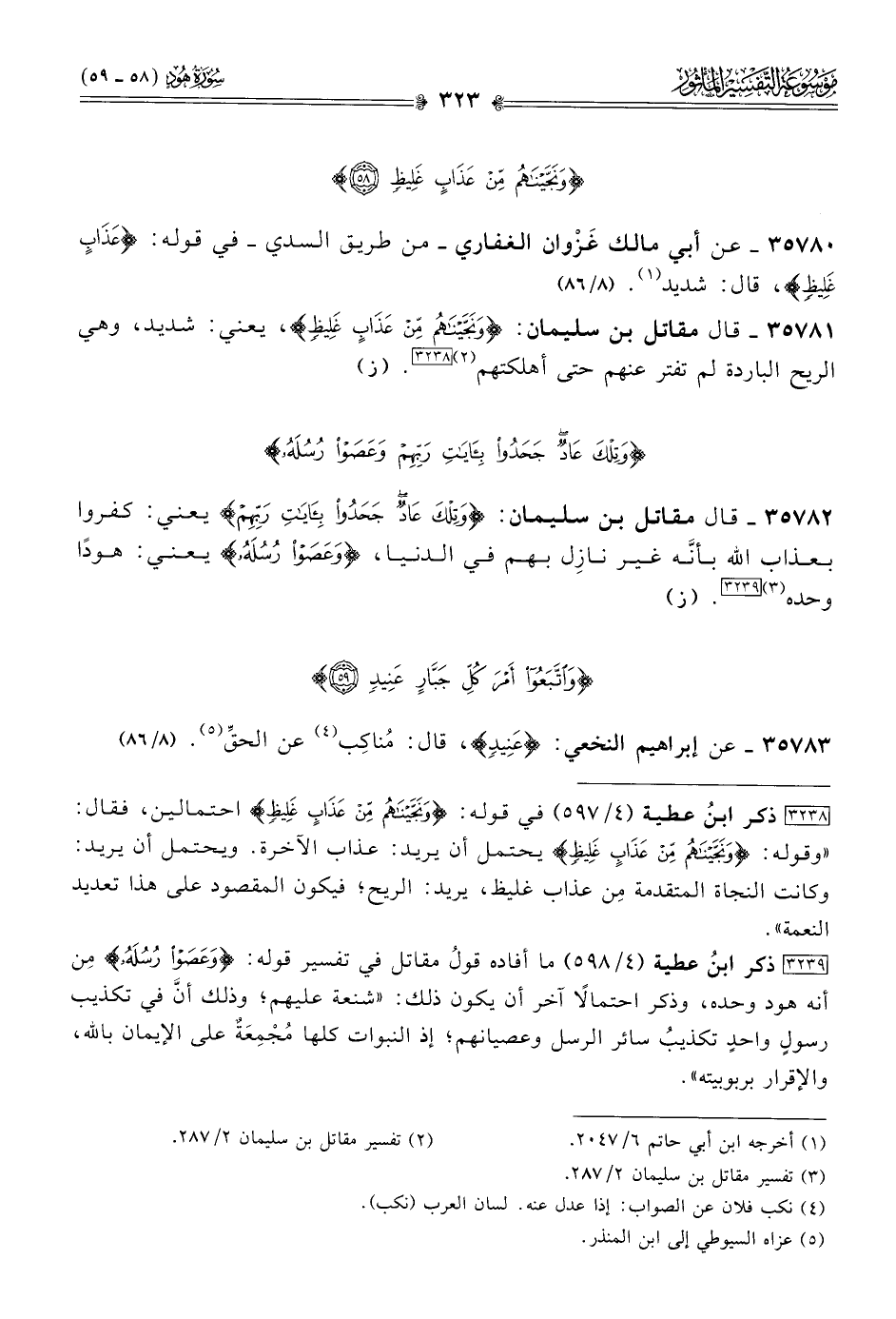 [٣٢٣٨] ذكر ابنُ عطية (٤/ ٥٩٧) في قوله: {ونجيناهم من عذاب غليظ} احتمالين، فقال: «وقوله: {ونَجَّيْناهُمْ مِن عَذابٍ غَلِيظٍ} يحتمل أن يريد: عذاب الآخرة. ويحتمل أن يريد: وكانت النجاة المتقدمة مِن عذاب غليظ، يريد: الريح؛ فيكون المقصود على هذا تعديد النعمة».