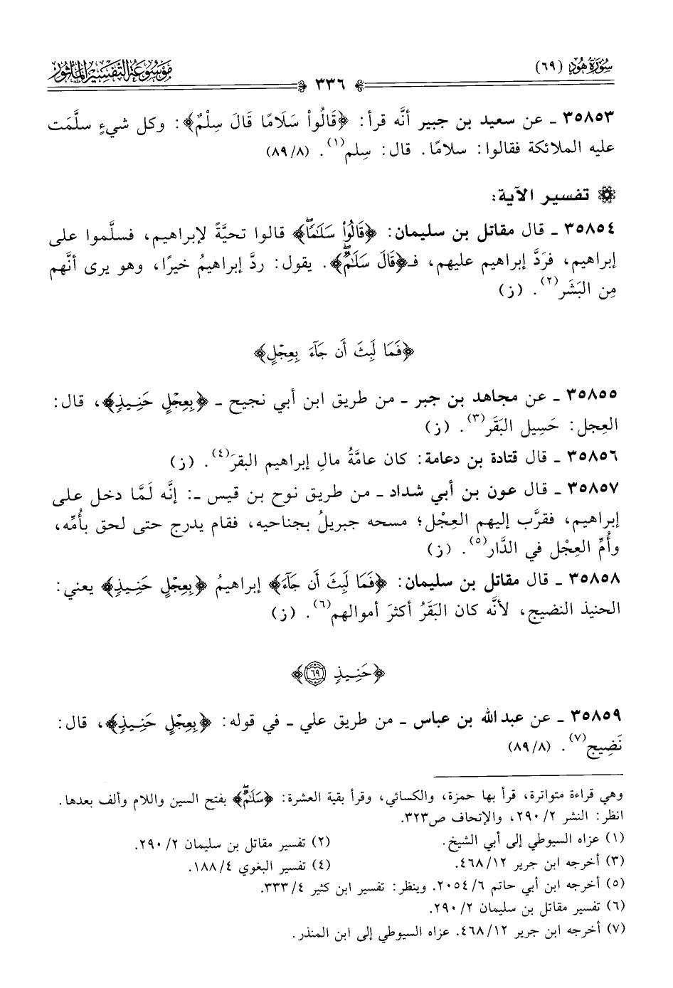 ٣٥٨٥٣ - عن سعيد بن جبير أنّه قرأ: «قالُواْ سَلامًا قالَ سِلْمٌ»: وكل شيءٍ سلَّمَت عليه الملائكة فقالوا: سلامًا. قال: سِلم (¬١).