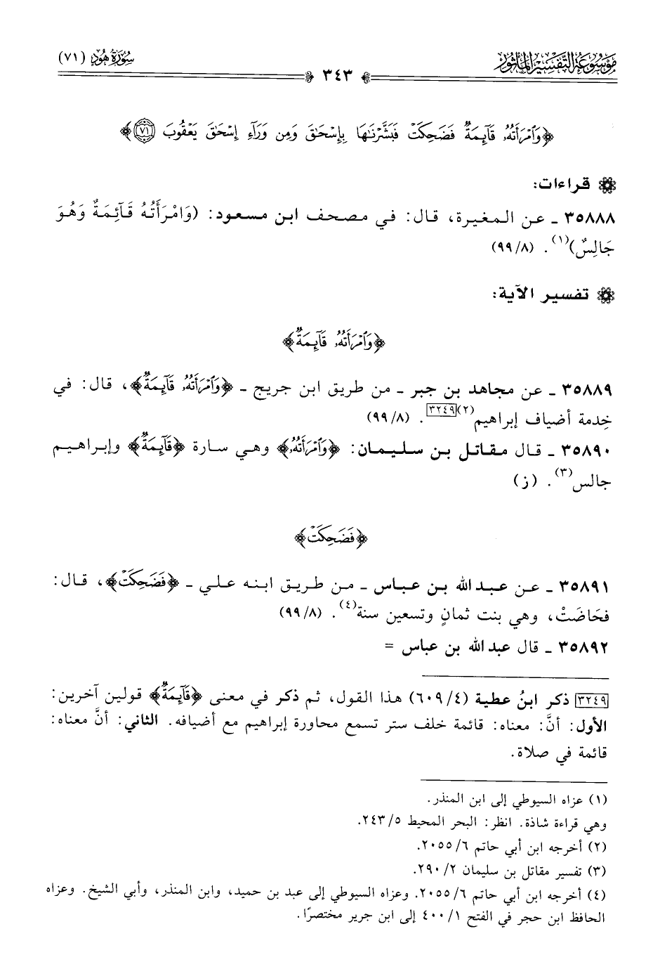 ٣٥٨٨٩ - عن مجاهد بن جبر -من طريق ابن جريج- {وامرأته قائمة}، قال: في خِدمة أضياف إبراهيم (¬٢) [٣٢٤٩]. (٨/ ٩٩)