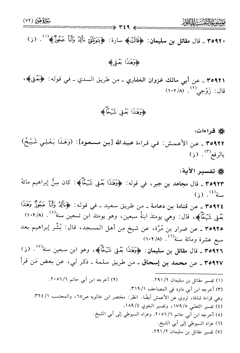 ٣٥٩٢٦ - قال مقاتل بن سليمان: {وهَذا بَعْلِي شَيْخًا}، وهو ابن سبعين سنة (¬٧). (ز)