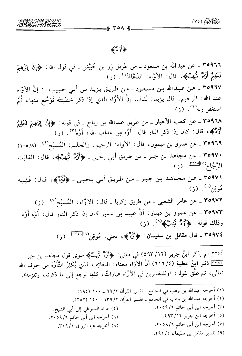 ٣٥٩٧٤ - قال مقاتل بن سليمان: {أوّاهٌ}، يعني: مُوقِن (¬٩) [٣٢٥٦]. (ز)
