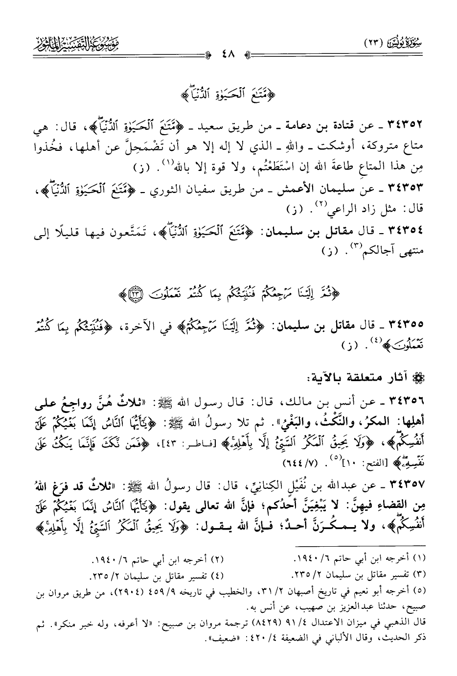 ٣٤٣٥٤ - قال مقاتل بن سليمان: {مَتاعَ الحَياةِ الدُّنْيا}، تَمَتَّعون فيها قليلًا إلى منتهى آجالكم (¬٣). (ز)