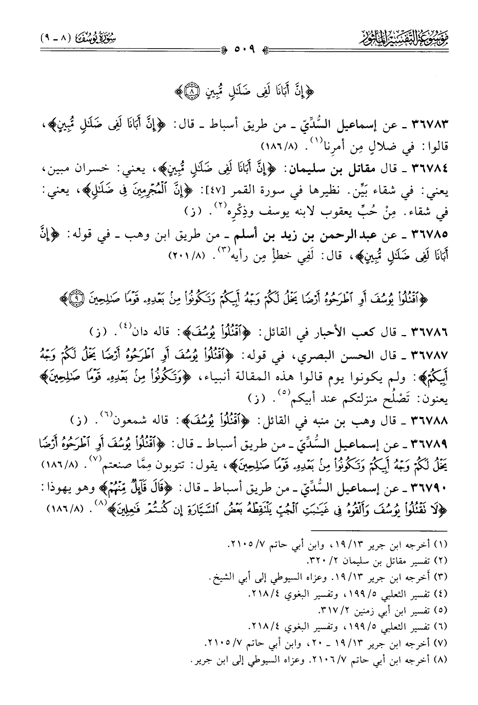 ٣٦٧٨٥ - عن عبد الرحمن بن زيد بن أسلم -من طريق ابن وهب- في قوله: {إن أبانا لفي ضلال مبين}، قال: لَفِي خطأٍ مِن رأيه (¬٣). (٨/ ٢٠١)