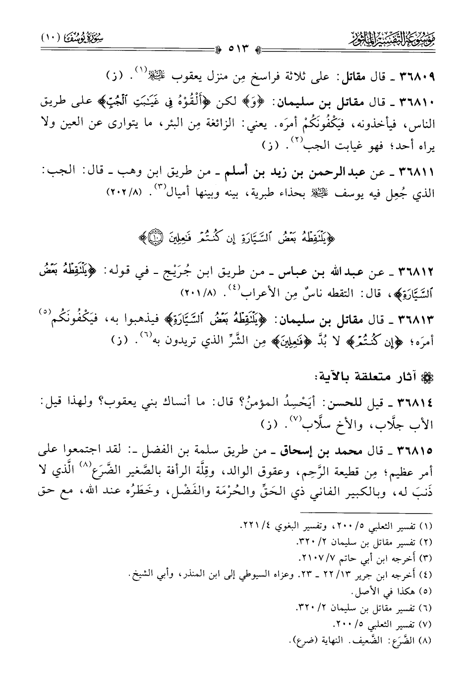 ٣٦٨١١ - عن عبد الرحمن بن زيد بن أسلم -من طريق ابن وهب- قال: الجب: الذي جُعِل فيه يوسف - عليه السلام - بحذاء طبرية، بينه وبينها أميال (¬٣). (٨/ ٢٠٢)