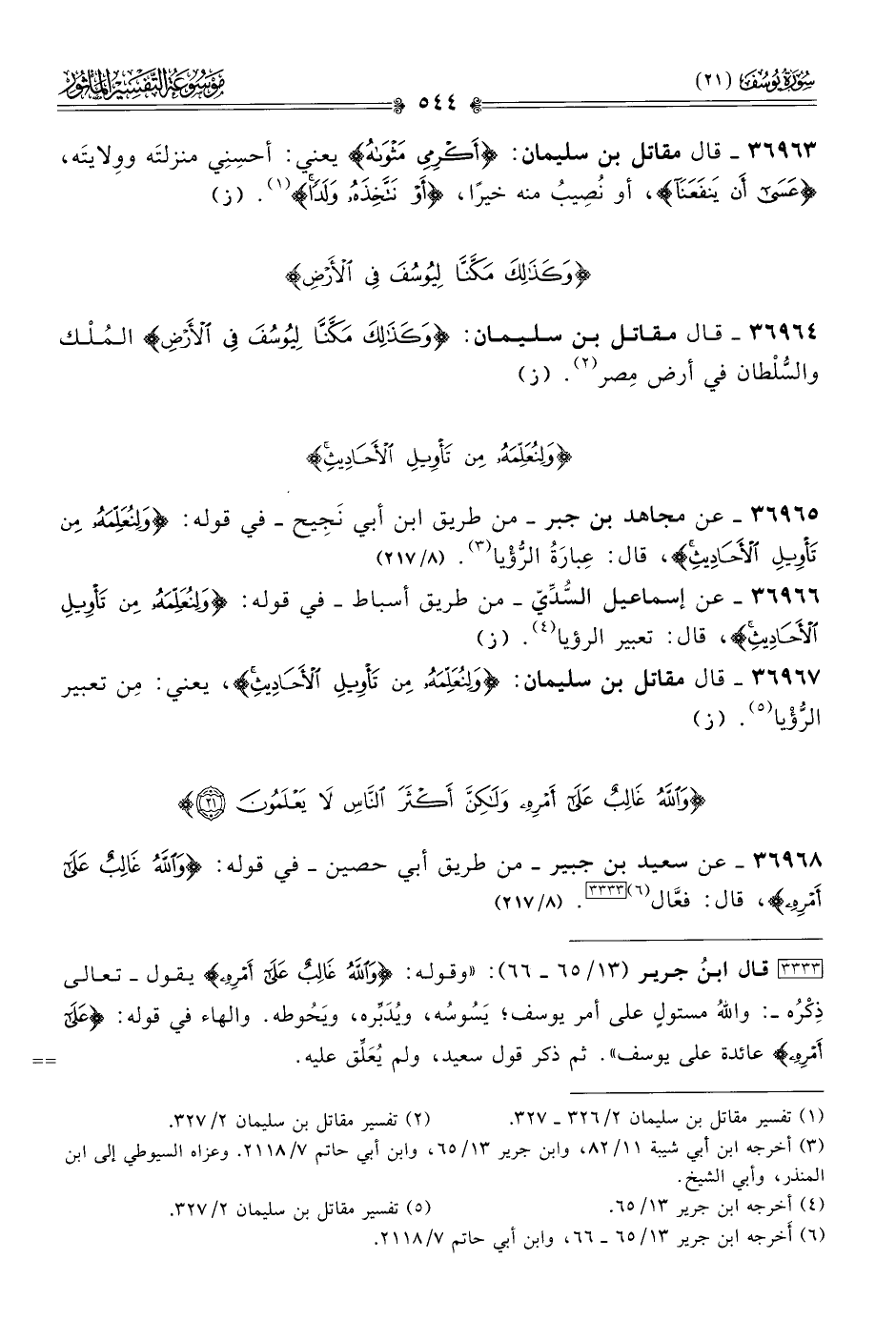 ٣٦٩٦٥ - عن مجاهد بن جبر -من طريق ابن أبي نَجِيح- في قوله: {ولِنُعَلِّمَهُ من تأويل الأحاديث}، قال: عِبارَةُ الرُّؤْيا (¬٣). (٨/ ٢١٧)