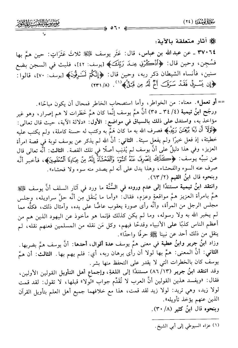 ٣٧٠٦٤ - عن عبد الله بن عباس، قال: عَثَر يوسف - عليه السلام - ثلاثَ عَثَراتٍ: حين همَّ بها فسُجِن، وحين قال: {اذكُرنى عند ربك}، فلبث في السجن بضع سنين، فأنساه الشيطان ذكر ربه، وحين قال: {إنكم لسارقون}، قالوا: {إن يسرق فقد سرق أخ له من قبل} (¬١). (٨/ ٢٣١)