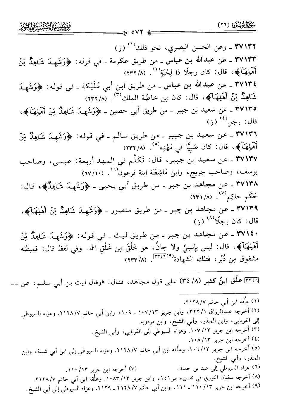 ٣٧١٣٥ - عن سعيد بن جبير -من طريق أبي حصين- {وشهد شاهد من أهلها}، قال: رجل (¬٤). (ز)