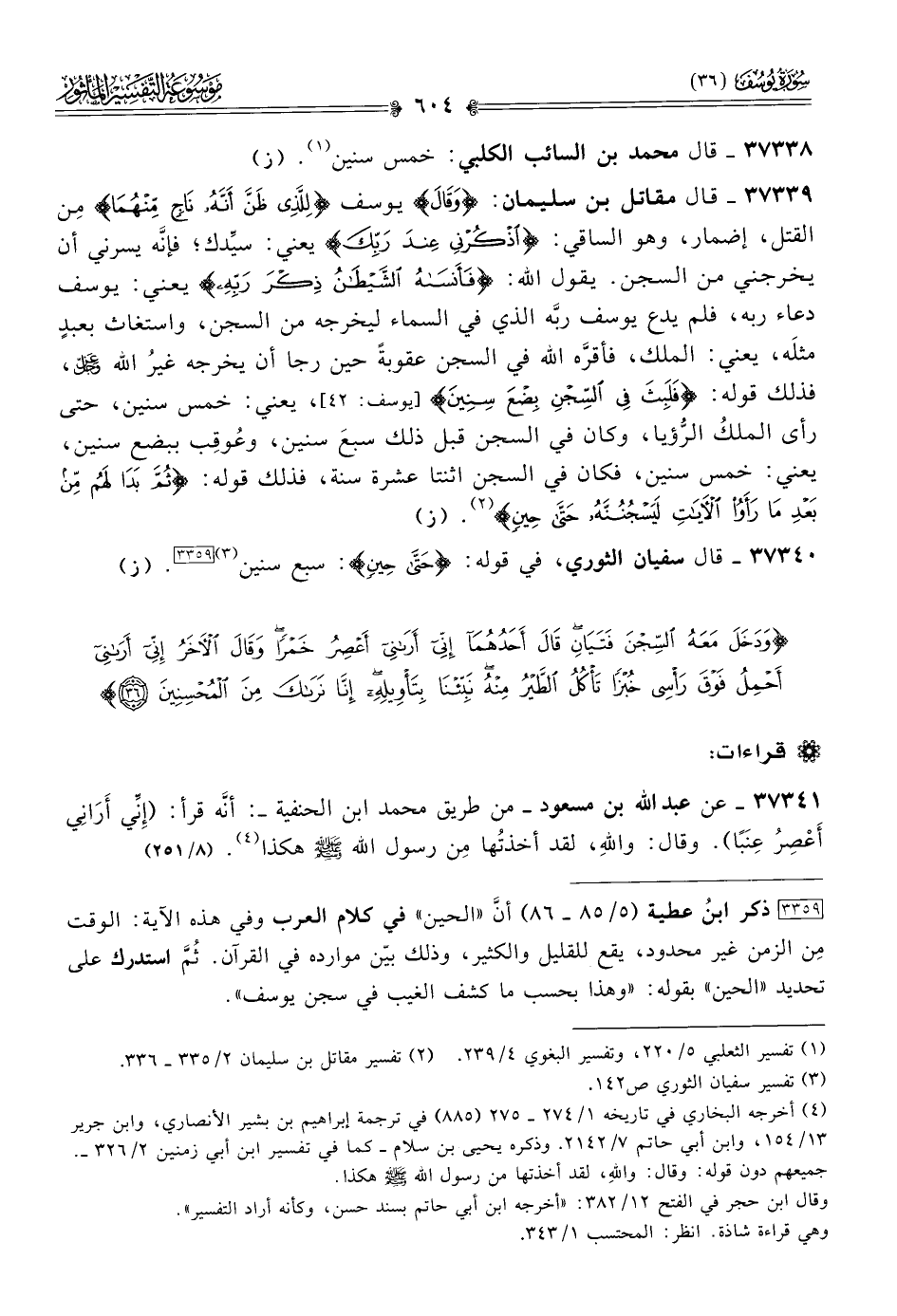 ٣٧٣٤٠ - قال سفيان الثوري، في قوله: {حتى حين}: سبع سنين (¬٣) [٣٣٥٩]. (ز)