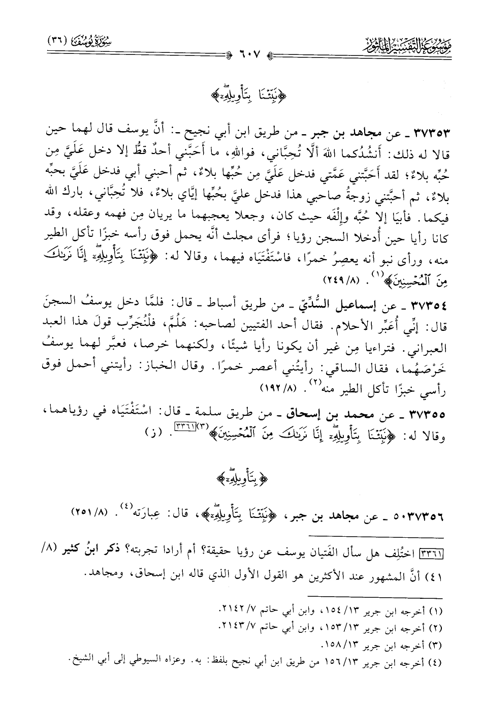 ٣٧٣٥٦ - عن مجاهد بن جبر، {نبئنا بتأويله}، قال: عِبارَته (¬٤). (٨/ ٢٥١)