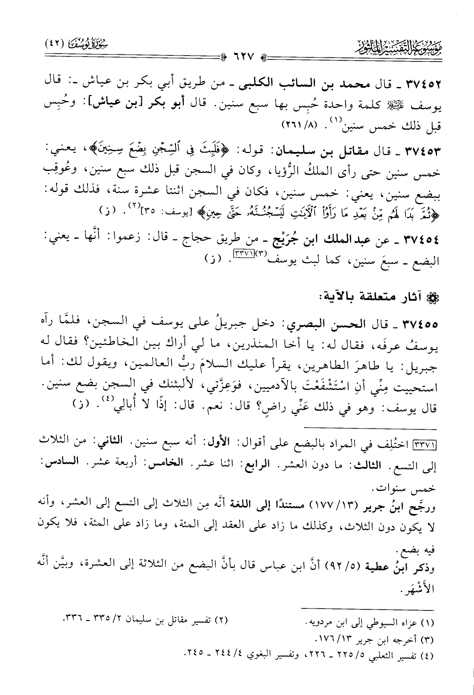 ٣٧٤٥٤ - عن عبد الملك ابن جُرَيْج -من طريق حجاج- قال: زعموا: أنّها -يعني: البضع- سبعَ سنين، كما لبث يوسف (¬٣) [٣٣٧١]. (ز)
