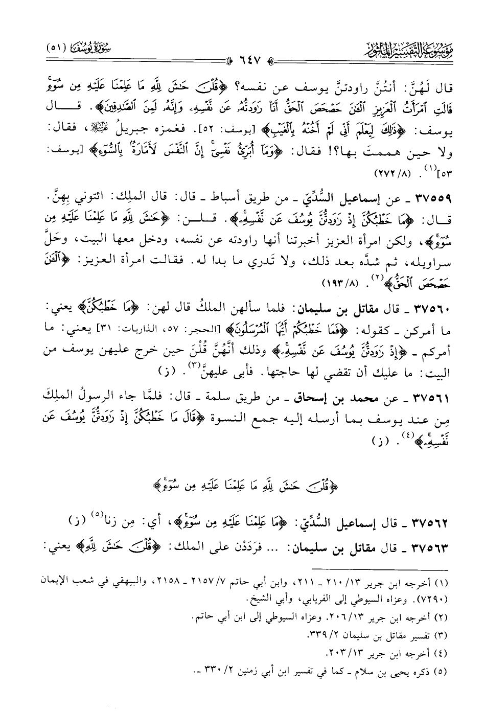 ٣٧٥٦٣ - قال مقاتل بن سليمان: ... فرَدَدْن على الملك: {قلن حاش لله} يعني: