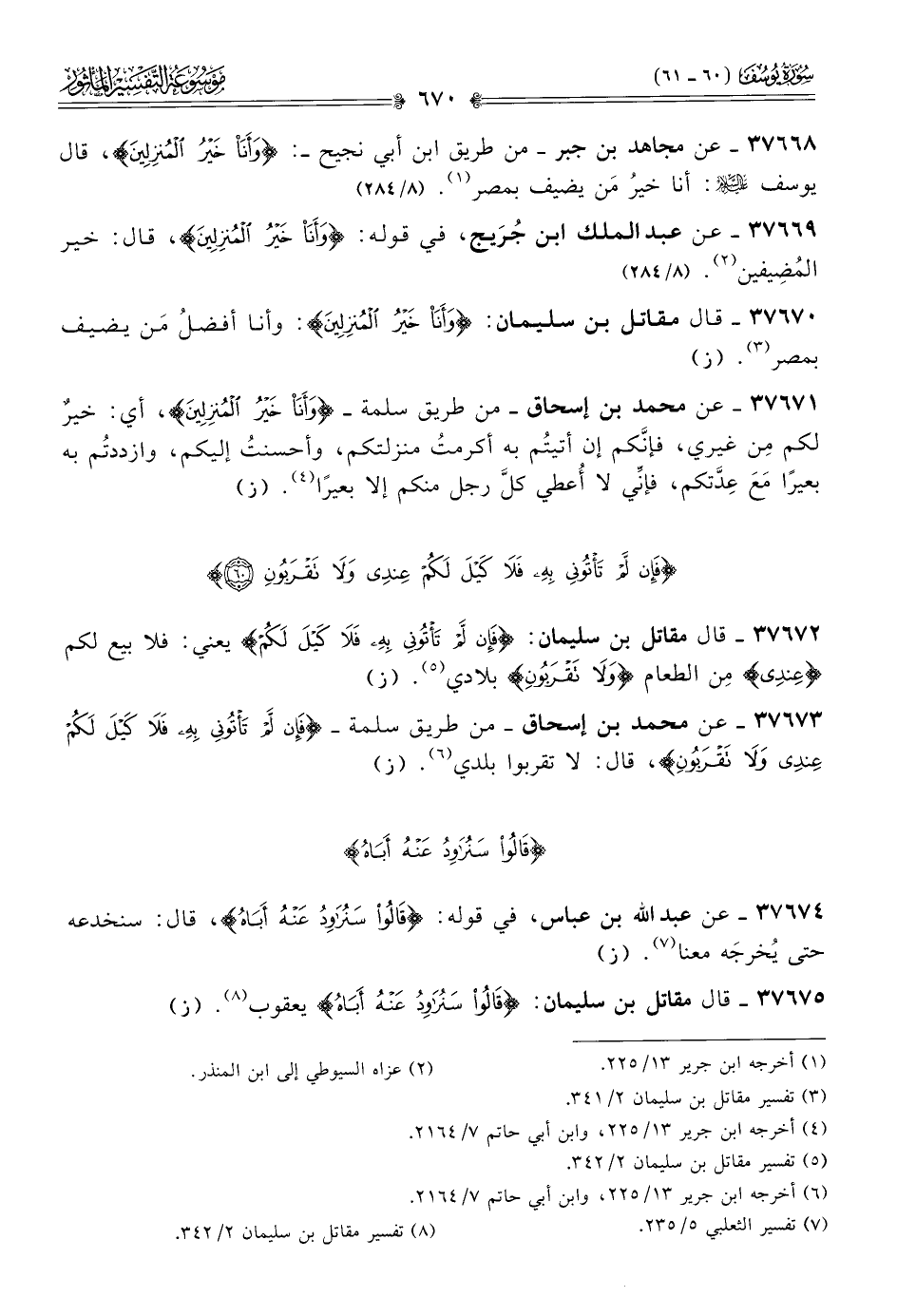 ٣٧٦٦٨ - عن مجاهد بن جبر -من طريق ابن أبي نجيح-: {وأنا خير المنزلين}، قال يوسف - عليه السلام -: أنا خيرُ مَن يضيف بمصر (¬١). (٨/ ٢٨٤)