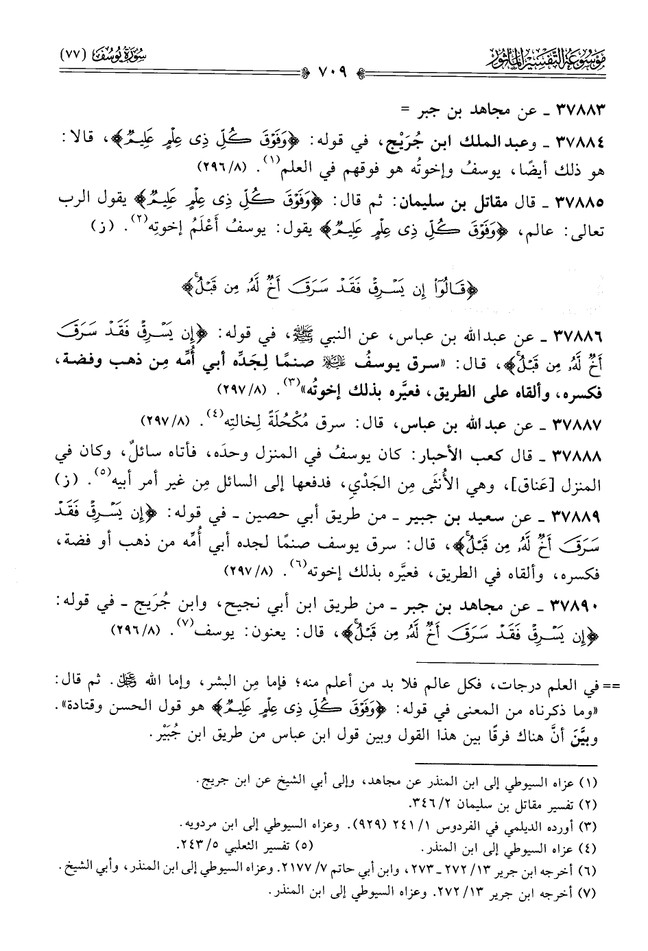 ٣٧٨٩٠ - عن مجاهد بن جبر -من طريق ابن أبي نجيح، وابن جُرَيج- في قوله: {إن يسرق فقد سرق أخ له من قبل}، قال: يعنون: يوسف (¬٧). (٨/ ٢٩٦)