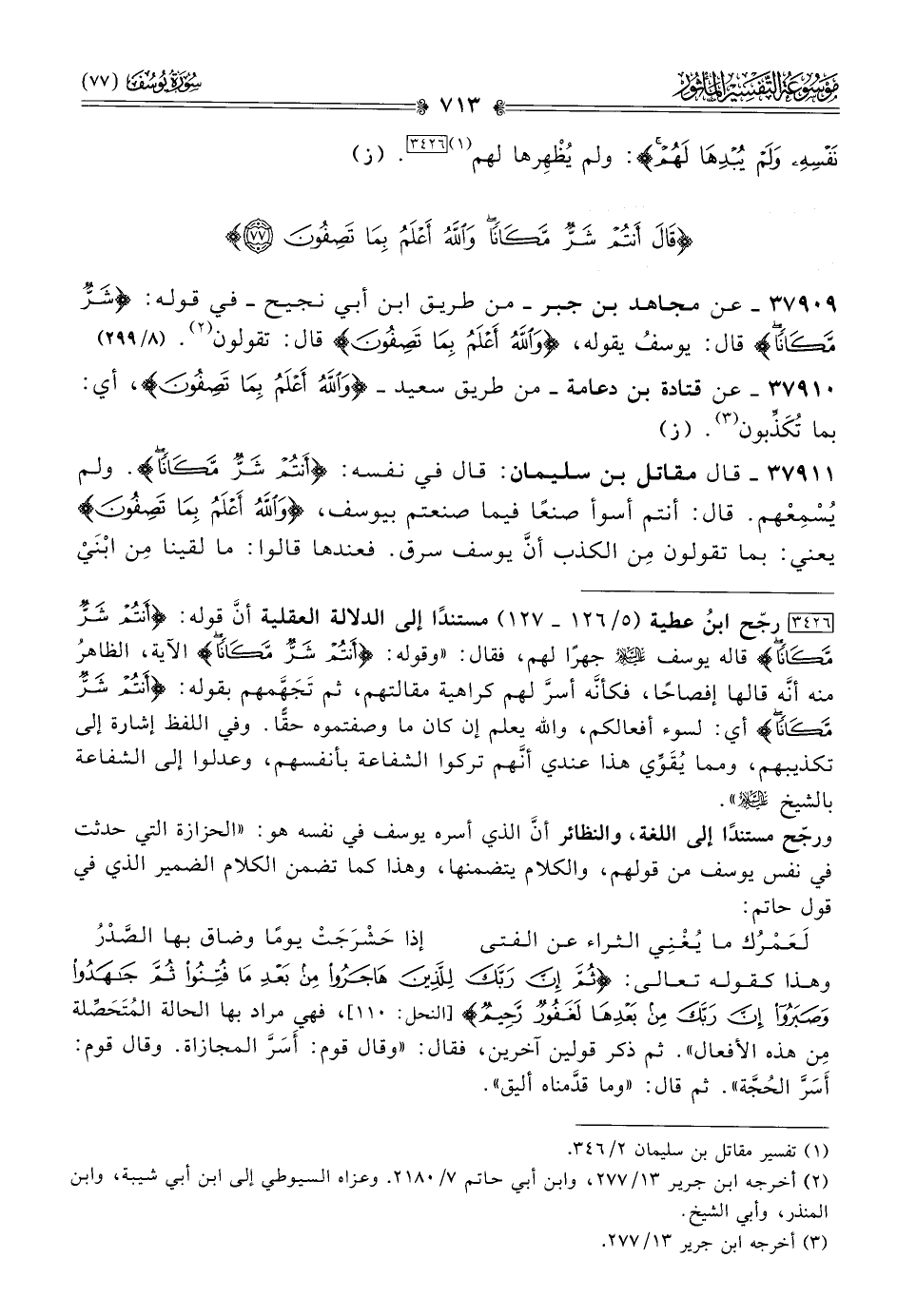 ٣٧٩٠٩ - عن مجاهد بن جبر -من طريق ابن أبي نجيح- في قوله: {شرٌ مكانا} قال: يوسفُ يقوله، {والله أعلم بما تصفون} قال: تقولون (¬٢). (٨/ ٢٩٩)