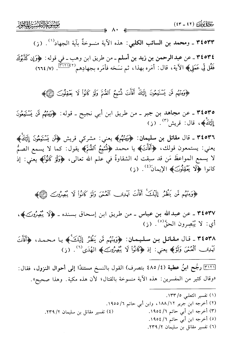 ٣٤٥٣٣ - ومحمد بن السائب الكلبي: هذه الآية منسوخةٌ بآية الجهاد (¬١). (ز)