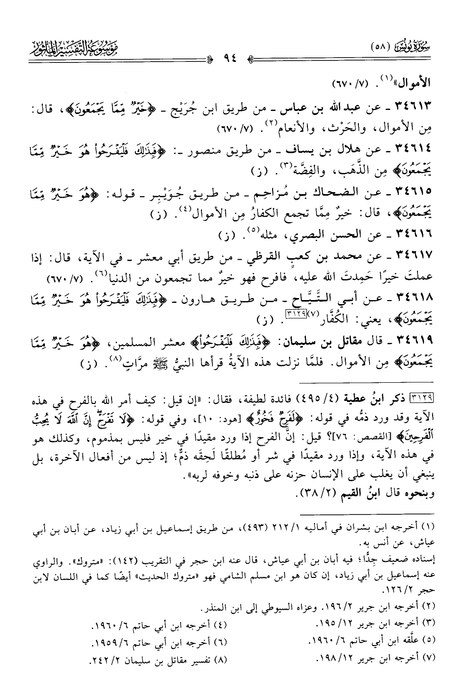 ٣٤٦١٨ - عن أبي التَّيّاح -من طريق هارون- {فبذلك فليفرحوا هو خير مما يجمعون}، يعني: الكُفّار (¬٧) [٣١٢٩]. (ز)